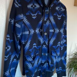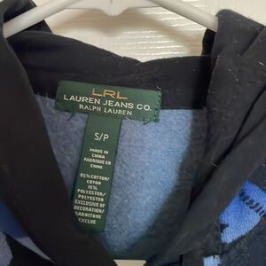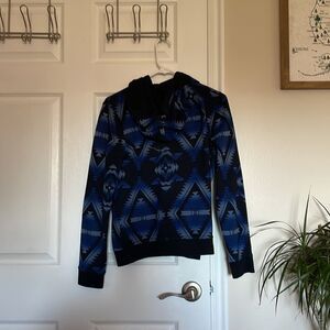 Ralph Lauren Jeans Co. Blue and Black Patterned Hoodie Button Up Jacket Aztec