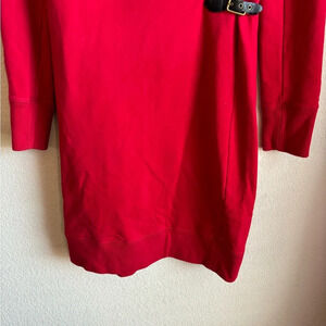 Great condition- no visible flaws, minor wash wear may be present. The best of both worlds! Comfy sweatshirt dress features a wrap style and chic cowl neck to keep you comfy while looking polished. Black buckle detail on side would go perfect with black boots. Perfect for the office!