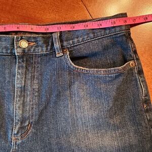 See pics for approximate measurements, features, condition, fabric content, and care instructions. Jeans have a slight distressing style on pockets & leg hems (see pics).