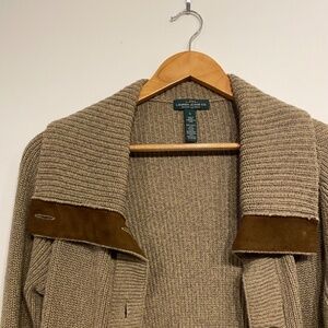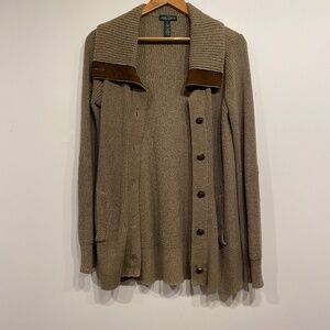 Ralph Lauren Jeans Co. Green Cotton Knit Collared Dark Academia Cardigan Small