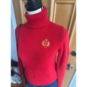 Ralph Lauren Jeans Co. Red Turtleneck Sweater Women’s Small Crest Logo Knit