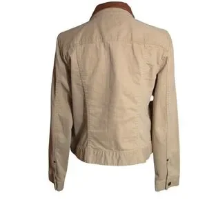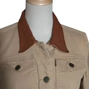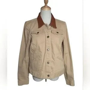 Lauren Jeans Co. tan denim jacket with leather collar. Collar is attached. Perfect for all seasons. Good overall condition