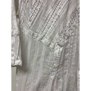 Ralph Lauren Jeans Co. White Diagonal Pintuck & Lace Tunic Blouse sz L EUC