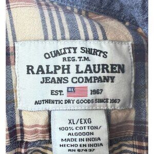 Ralph Lauren Jeans Company Mens Plaid Shirt Short Sleeve Size XL Button Down