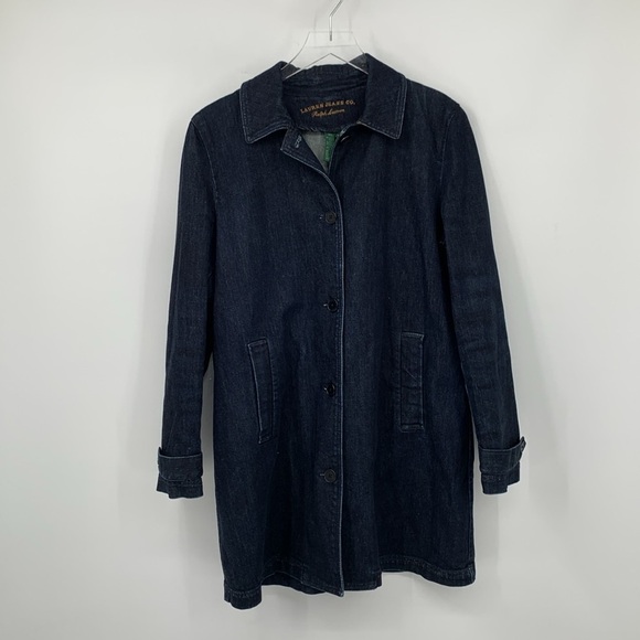 Ralph Lauren Jeans Denim barn duster jacket coat dark blue wash women Large