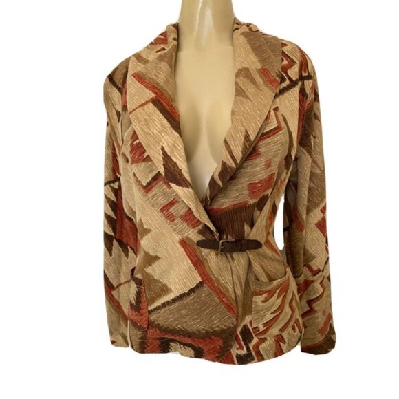 Ralph Lauren Jeans Geometric Lightweight Jacket Blazer Knit Cotton Brown…