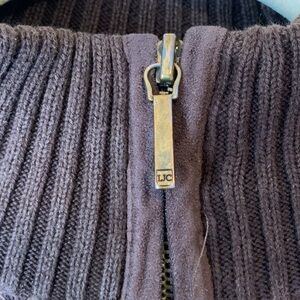 Tags: Ralph lauren Jeans Co. Knit Houndstooth Tweed Suede Zip Up Sweater Jacket Brown Medium Academia equestrian, rustic