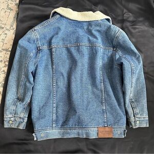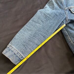 Vintage trucker barn jacket/ chore coat denim jacket with faux Sherpa lining, snap button from closure, front pockets. Back Ralph Lauren patch. Adjustable snaps at waist. May run a little small/sleeves are slightly on the shorter side so please check measurements