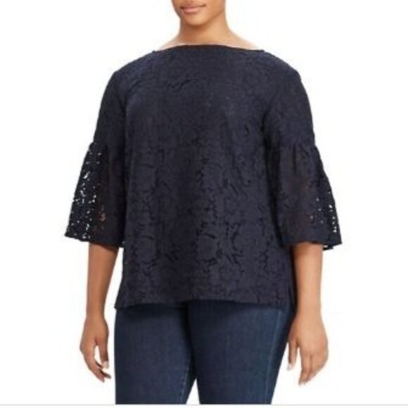 Ralph Lauren Kadelyn Lace Blouse Plus Size 3X Navy Blue Romantic Feminine NWT