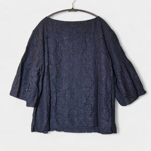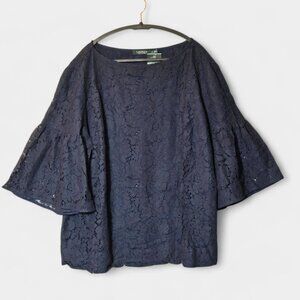 Lauren Ralph Lauren Kadelyn Plus Lace Sheer Blouse 3X Navy Romantic Feminine NWT