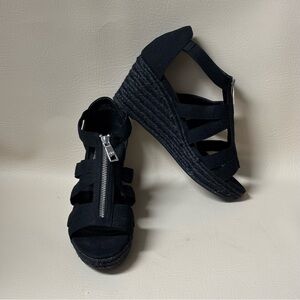 Ralph Lauren Kelcie Fabric Open Toe Casual Espadrille Wedge Sandals Blk Sz 9