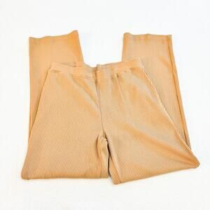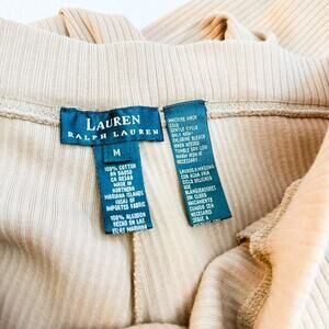 Ralph Lauren Khaki Cream Ribbed Knit Cotton Wide Leg Pant Size M
