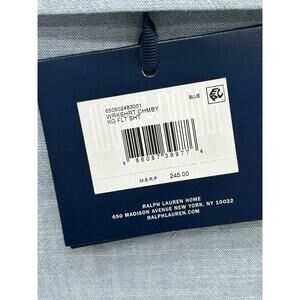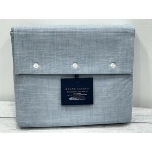 Ralph Lauren King Flat Sheet Chambray Blue Workshirt NEW