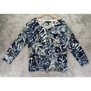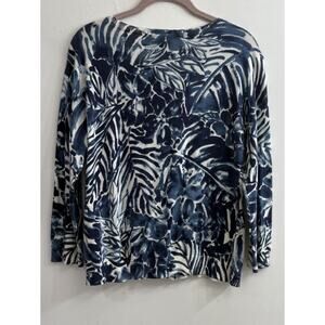 Ralph Lauren Knit Cardigan Sweater RL Petit Large Blue White Floral Design