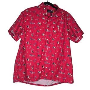 Ralph Lauren L Classic Fit Red Button Up Short Sleeve Hawaiian Fish Swordfish