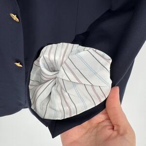 A timeless navy wool blazer featuring signature Lauren Ralph Lauren gold crest buttons and a structured, classic silhouette. Perfect for work, special events, country club style, or polished everyday wear.