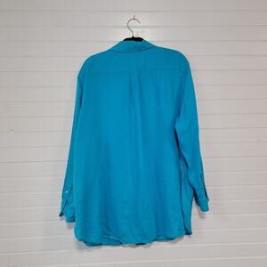 Ralph Lauren LRL Linen Button Up Shirt Plus Size 2X Blue Lagenlook Boho Top