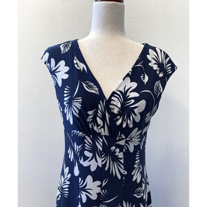Ralph Lauren LRL Midi Dress Womens Size 8 Blue Tropical Palm Floral Print Wrap