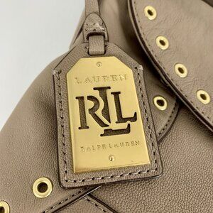 Ralph Lauren LRL Morley Taupe Foldover Flap Grommet Crossbody Shoulder Bag Purse