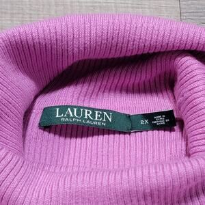 Ralph Lauren LRL Plus Size 1X Ribbed Cotton Turtleneck Sweater Purple Stretchy