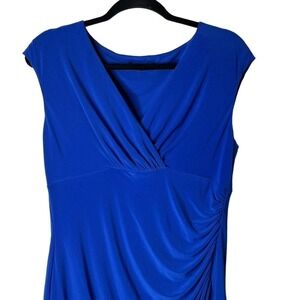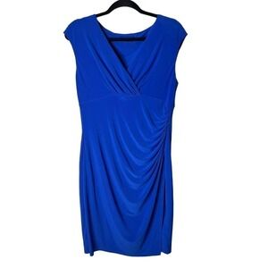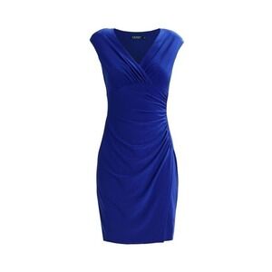 Ralph Lauren LRL Sheath Dress Ruched Jersey Stretch V-Neck Faux Wrap Royal Blue