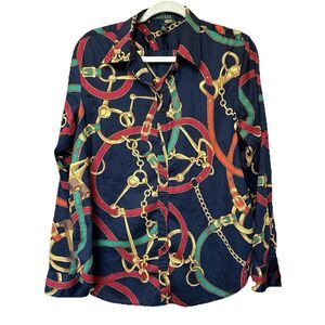 Ralph Lauren LRL Shirt Womens XL Long Sleeve Equestrian Button Up Old Money Bits