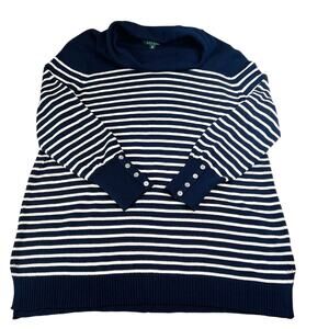 Lauren Ralph Lauren Women’s Sweater Wool Blend Cowl Neck Striped Navy Cream Size 2X