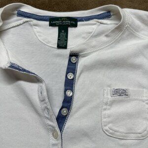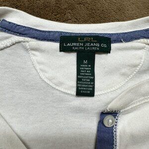 Ralph Lauren LRL White Henley Top w/ Chambray Trim 3/4 Sleeve Y2K Medium