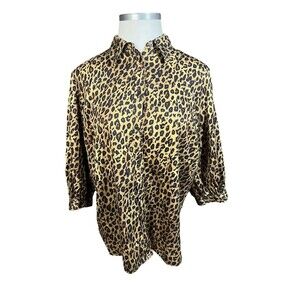 Ralph Lauren LRL Women’s 2X Leopard Animal Print Puff Sleeve Button Up Shirt