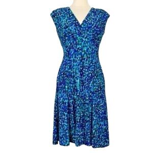Ralph Lauren LRL Womens Blue Green Print Cap Sleeve Dress V Neck size 4