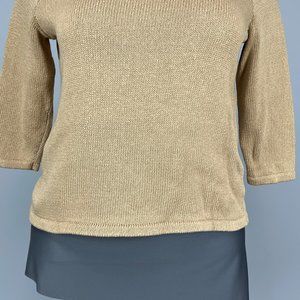 LRL camel brown 3/4 sleeve 100% cotton knit sweater