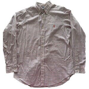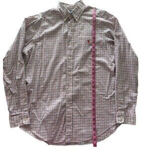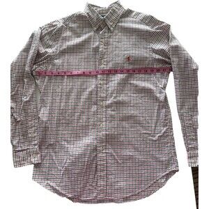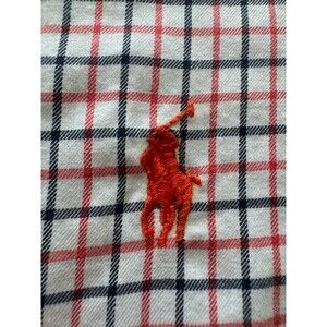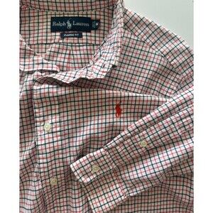 Ralph Lauren L/S Oxford Button Front Shirt Mens Medium Orange Navy Plaid