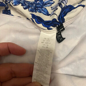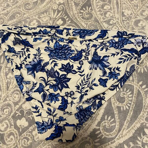 Ralph Lauren Ladies Size 14 Blue White Floral Bikini Bottom Gold Logo