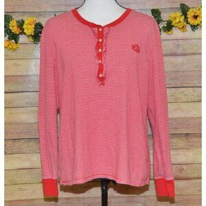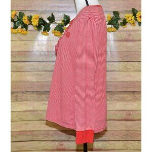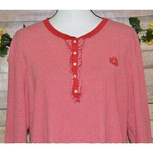 Ralph Lauren Ladies XL Long Sleeve Knit Top Red White Striped Ruffle Half Button