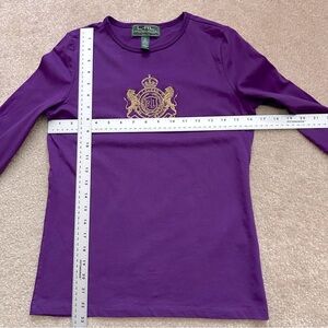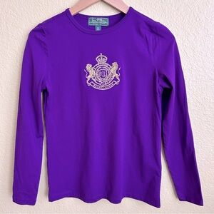 Good condition. Women’s Lauren Active, vintage, long sleeve tee. Features Ralph Lauren crest in gold tone.
