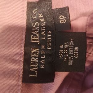 Chic lavender denim pants by Ralph Lauren. Ideal for everyday wear.Size 8P inseam 17 inches mid rise 10 inches 100 % cotton