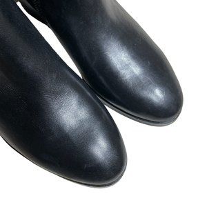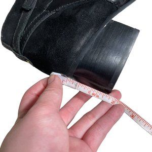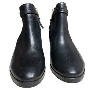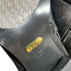 Ralph Lauren Leather Ankle Boots 5.5 Suede Block Heel Almond Toe Strap Harness Black