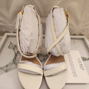 Ralph Lauren Leather " Gabriele" Cream Heeled Sandals. NIB. Size 10