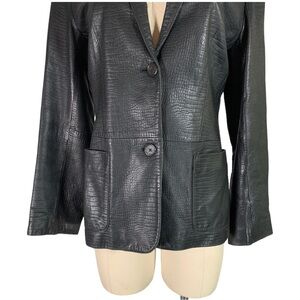 Ralph Lauren Embossed Leather Jacket Size Small Black