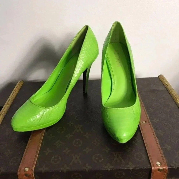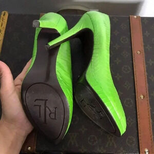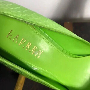 Ralph Lauren Leather Snake Skin Women’s Green High Heels Shoes Great Condition Preowned Size 10