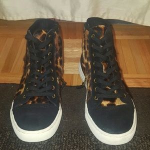 Ralph Lauren Leopard hair calf high tops with black suede details and inside zipper.