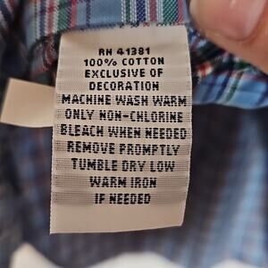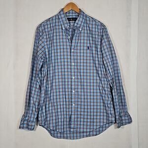 Ralph Lauren Light Blue with Red and Green Plaid Button Down Shirt in excellent condition.