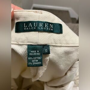 Light khaki colored Lauren by Ralph Lauren straight leg, flat front trouser