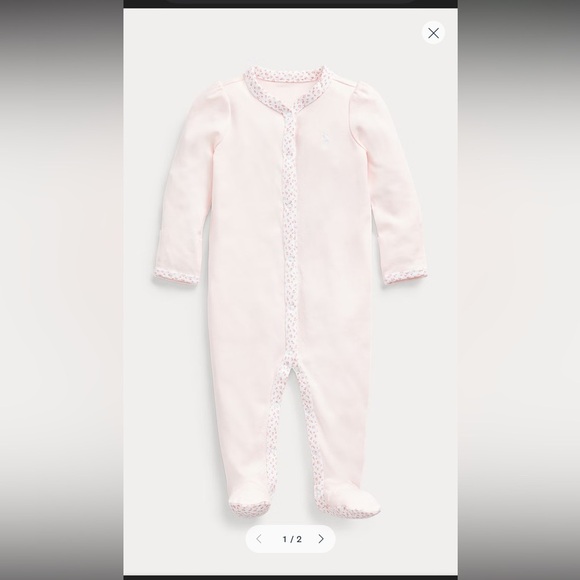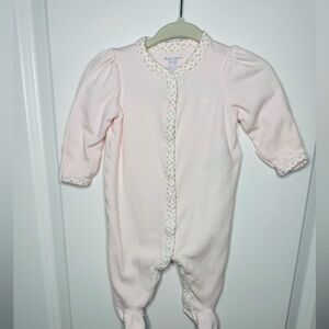 Ralph Lauren Light Pink Baby Girl Floral Trim Footie Pajamas Size 3M