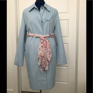 Beautiful Ralph Lauren lightweight coat. This was gently worn and well taken care of. Features: front slash pockets, hidden front button closure, fully lined. Scarf belt is not included, but shows how you can cinch the waist for a more fitted look.