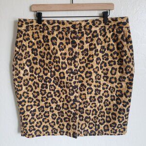 Lauren Ralph Lauren Linen Cotton Blend Leopard Print Button Front Pencil Skirt Brown/Black Size Women's 16