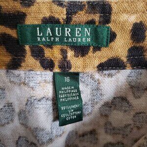 Ralph Lauren Linen Blend Leopard Print Button Front Skirt Brown/Black Womens 16