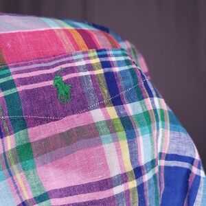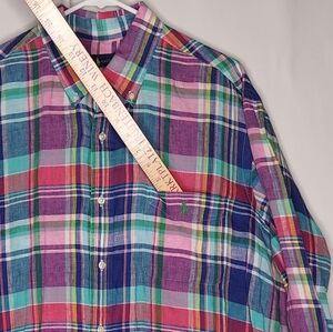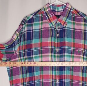 Ralph Lauren Linen Shirt XL Mens Plaid Button Collar Long Sleeve Multicolor