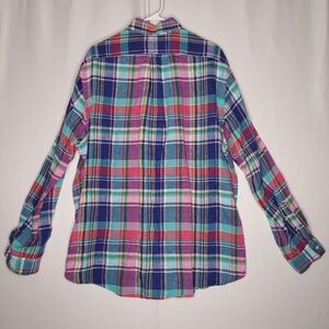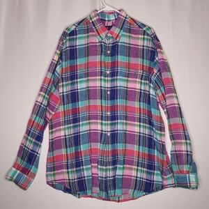 Ralph Lauren Linen Button Shirt Mens XL Plaid Collar Long Sleeve Multicolor