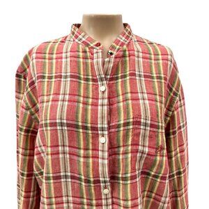 Ralph Lauren Linen Plaid Button Up Shirt Long Sleeve Multicolor Women L